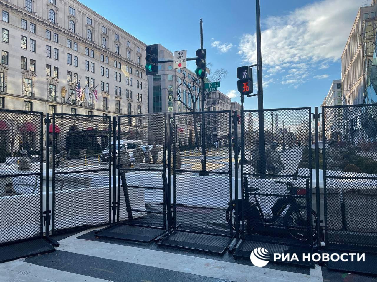 17:09 Центр Вашингтона перед инаугурацией: ограждения, военные, техника.
