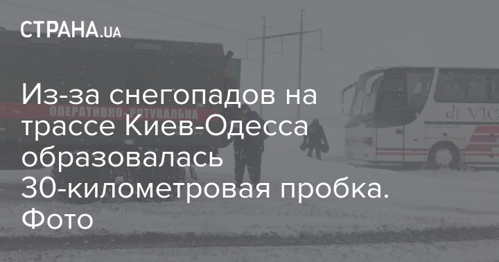 Из-за снегопадов на трассе Киев-Одесса образовалась 30-километровая пробка. Фото