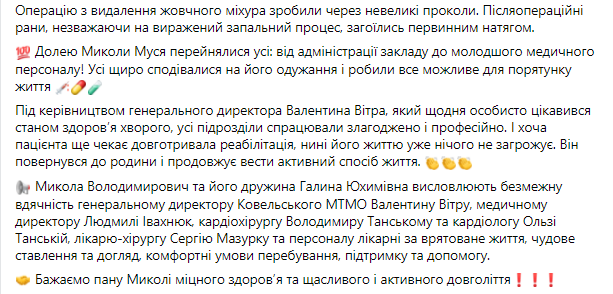 Сейчас Николай Мусь выздоровел. Его выписали из больницы.