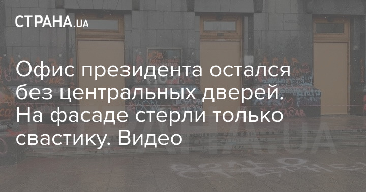 В рамках устранения последствий субботнего погрома на стенах и асфальте возле Офиса Зеленского замазали только свастику, остальные надписи не смыли и не закрасили.