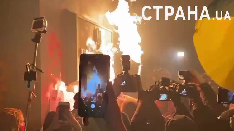 Двоих человек подозревают в поджоге таблички "Президент Украины". Скриншот из видео