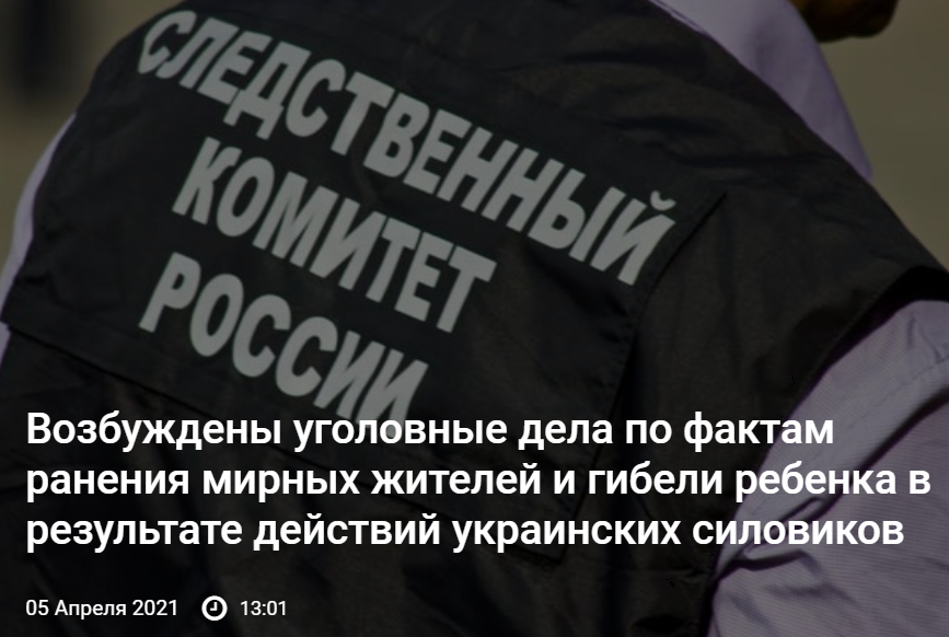 "В последнее время в информационном пространстве ОРДЛО и Российской Федерации активно распространяется информация о гибели 02.04.2021 пятилетнего ребенка и ранении женщины в частном домовладении, что находится в поселке Александровское, якобы в результате детонации взрывного устройства, сброшенного беспилотным летательным аппаратом Вооруженных Сил Украины.