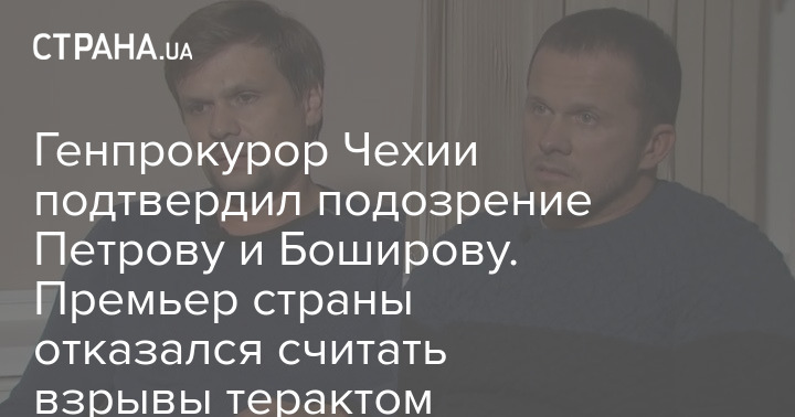 Генеральный прокурор Чехии подтвердил, что двое мужчин, подозреваемых в организации взрыва в 2014 году на складе боеприпасов, - те же самые лица, которых Великобритания идентифицировала как предполагаемых российских агентов, стоящих за отравлением Сергея Скрипаля в Солсбери четыре года назад, передает агентство.