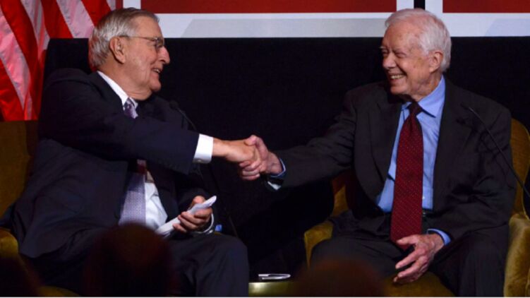 Бывший вице-президент Уолтер Мондейл (слева) и бывший президент Джимми Картер в Вашингтоне, в 2015 году. Фото: Ли Фогель / WireImage