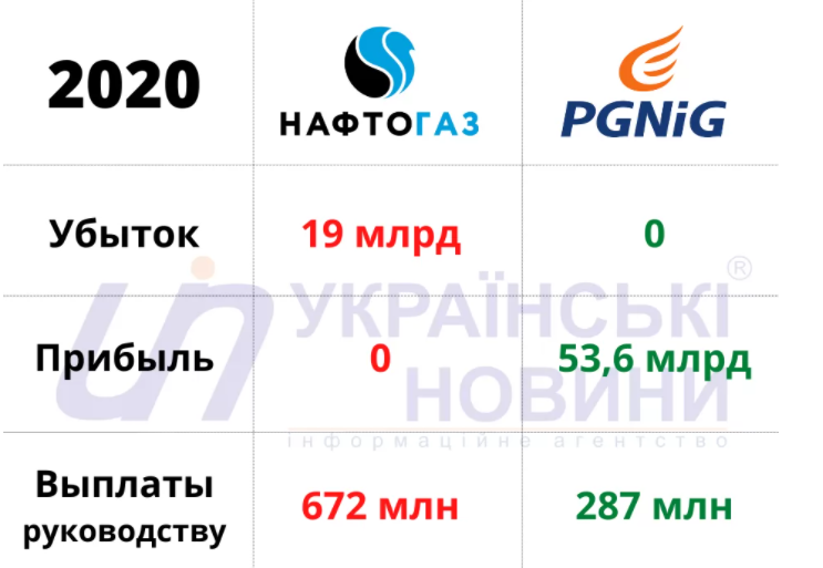 В свою очередь польская нефтегазовая компания PGNiG (Polskie Górnictwo Naftowe i Gazownictwo S.A.) в 2020 году увеличила чистую прибыль в 5,35 раза до 1,6 млрд евро, однако выплаты правлению почти не изменились в сравнении с 2019 годом.