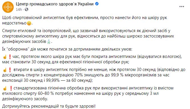 Как рассказали в Центре общественного здоровья МОЗ Украины, спирты этиловый и изопропиловый, что обычно используются как действенное средство в спиртосодержащей антисептик для рук, относятся к наиболее широко применяемых дезинфицирующих средств.