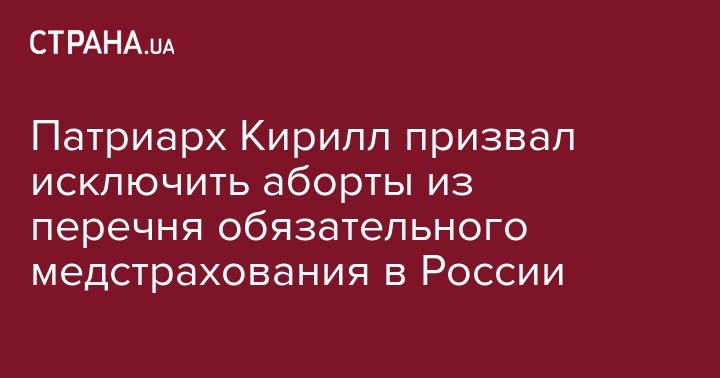 Патриарх Московский и всея Руси Кирилл подписал петицию об исключении абортов из перечня услуг, предоставляемых по полису ОМС (обязательного медицинского страхования), передает РТ.