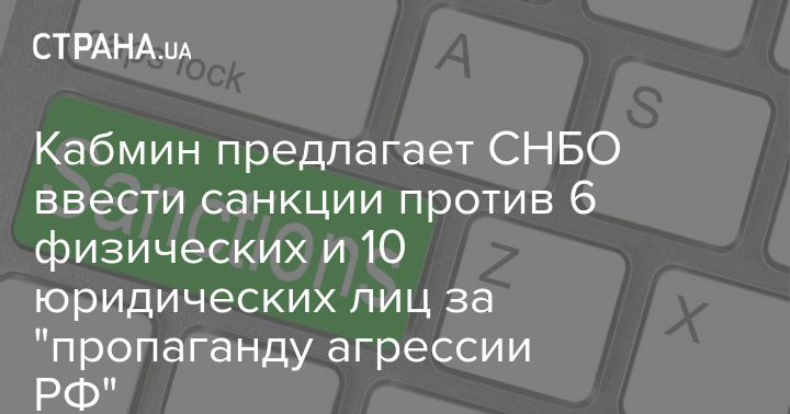Кабинет министров Украины предлагает СНБО ввести санкции против 6 физических и 10 юридических лиц за "распространение продукции и информационного контента, направленных на оправдание вооруженной агрессии Российской Федерации против Украины".