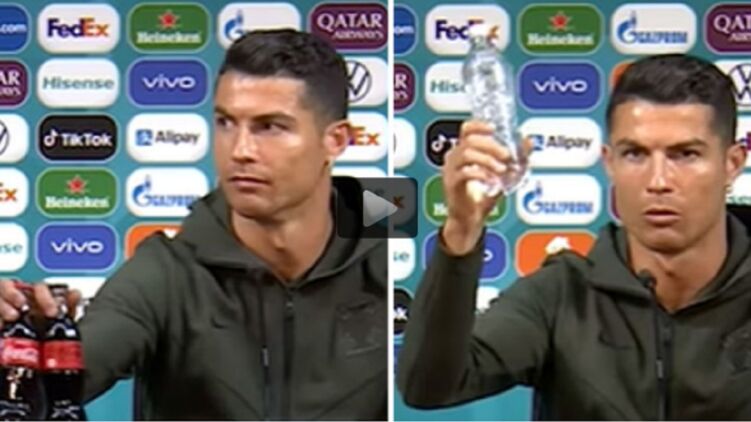 Акции компании рухнули в цене примерно на четыре миллиарда долларов после того, как Криштиану Роналду пренебрежительно отодвинул в сторону две бутылки с колой и затем демонстративно взял в руку и поднял бутылочку с водой, четко обозначив свои предпочтения. Об этом передает испанская газета Marca.