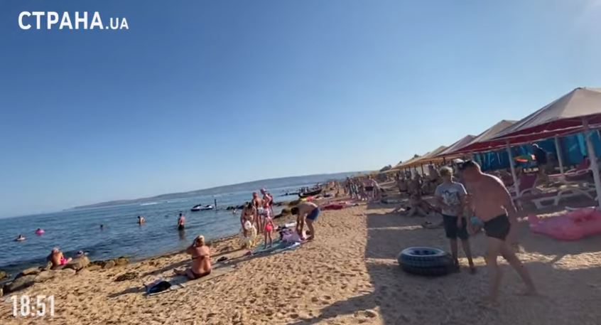 Далее Олеся Медведева отправилась на "Золотой пляж" в Берегово и окунулась в морскую водичку. Отдыхающих там оказалось еще больше.
