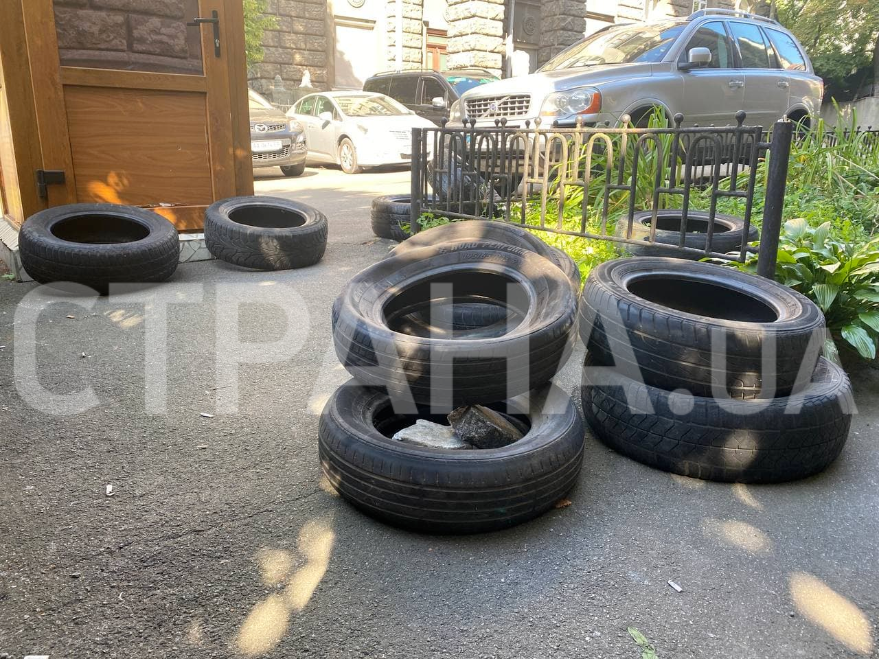 17:30 Возле Офиса президента силовики проводят следственные действия. В ходе следственных действия были изъяты автомобильные покрышки, файера и баллончики.