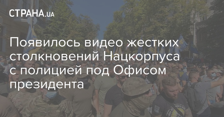 Появилось еще одно видео столкновений Нацкорпуса с силовиками во время митинга под Офисом президента в субботу, 14 августа.