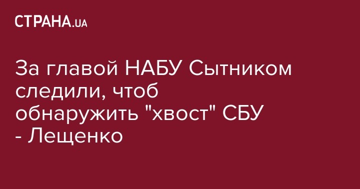 "На самом деле это была не слежка, а контрнаблюдение НАБУ за тем, не следят ли за Сытником. Они нашли за ним хвост. Есть подозрение, что это был человек СБУ. И установили наружку за наружкой”, - сказал Лещенко “Стране”. Сам Углава отказался комментировать эту тему, уточнив в комментарии “Страна”, что оперативно-техническое управление находится не в его подчинении.