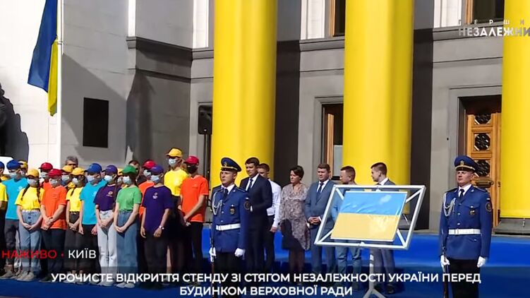На открытии стенда выступил председатель Рады Дмитрий Разумков. Он заявил, что тридцать лет назад внесение Флага Независимости Украины в зал заседаний парламента и стало стартом для развития свободного и демократического государства.