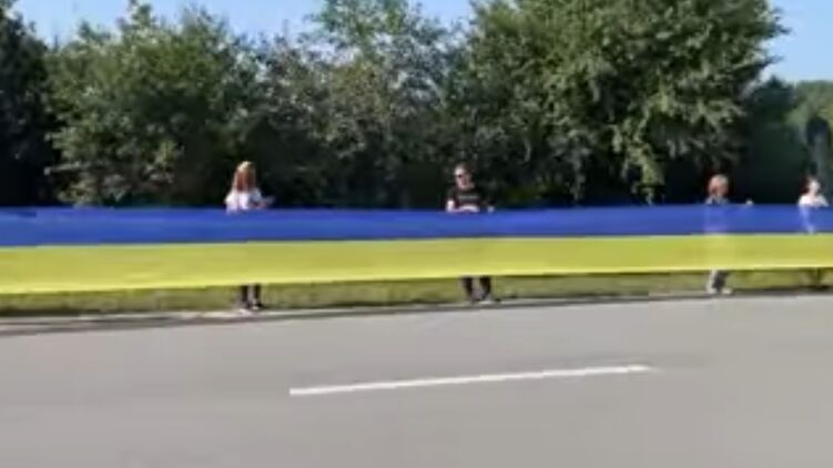 В воскресенье утром, 22 августа, между Тернопольской и Хмельницкой областями был развернут гигантский Государственный флаг Украины.