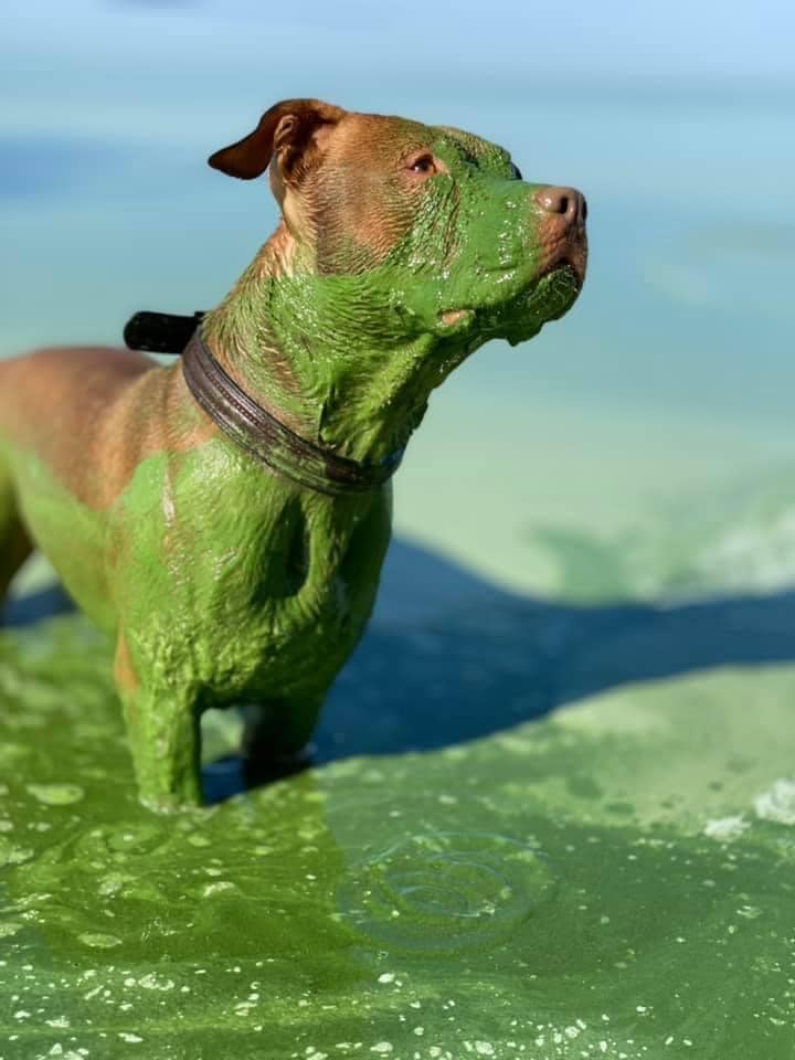 Сеть облетели фото рыжего пса, который после купания в Днепре "позеленел".