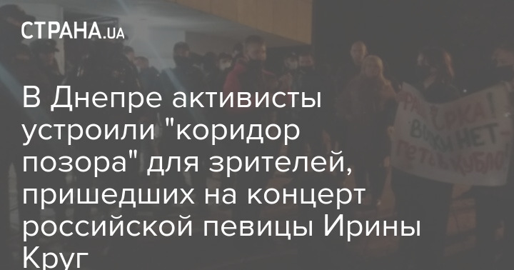 В Днепре под зданием летнего театра в парке Шевченко =радикалы устроили "коридор позора" для посетителей концерта исполнительницы русского шансона Ирины Круг. Инцидент произошел в среду, 6 октября.