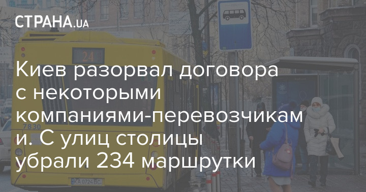 Мэрия Киева разорвала с некоторыми перевозчиками договора на обслуживание 21 городского маршрута, с улиц столицы убирают 234 маршрутных автобуса. Решение было принято в связи с поддельными документами.