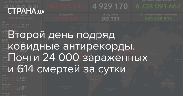 Университет Джона Хопкинса также привел новые данные на утро 22 октября. С начала пандемии на планете уже 242 475 242 человека заразились СOVID-19. Умерли за этот же срок - 4 929 170 человек.