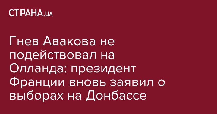 Несмотря на взбучку, который устроил президенту Франции Франсуа Олланду глава МВД Украины Арсен Аваков посредством своего поста в Фэйсбуке, Олланд продолжает говорить о выборах на Донбассе (против чего в резкой форме выступил Аваков). В частности, на официальном сайте президента Франции появилась информация о переговорах по этому поводу с Петром Порошенко.