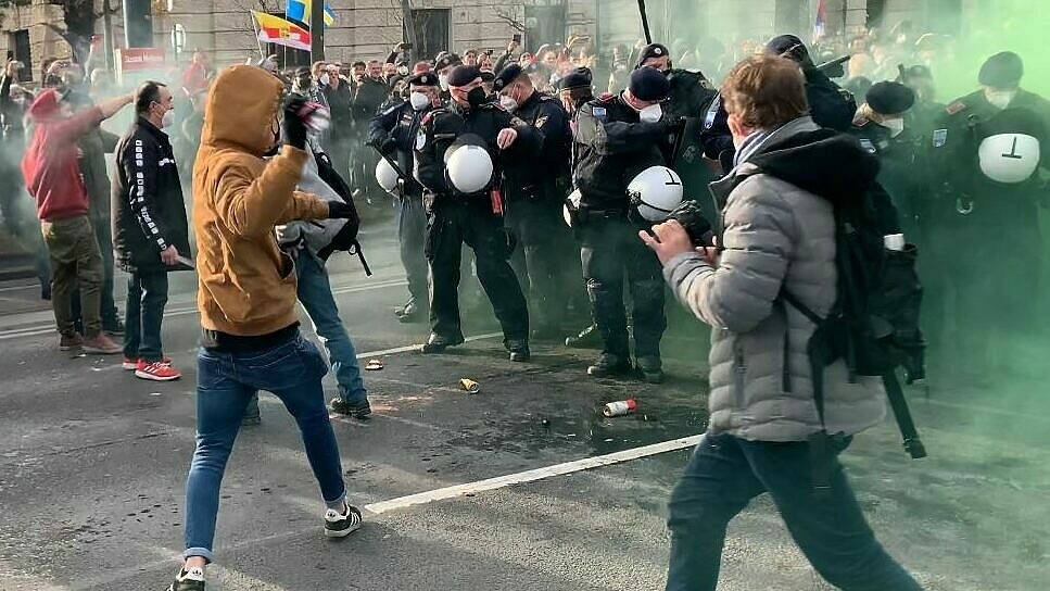 В Вене ковид-бунт перерос в стычки полицией. Фото: Krone.at