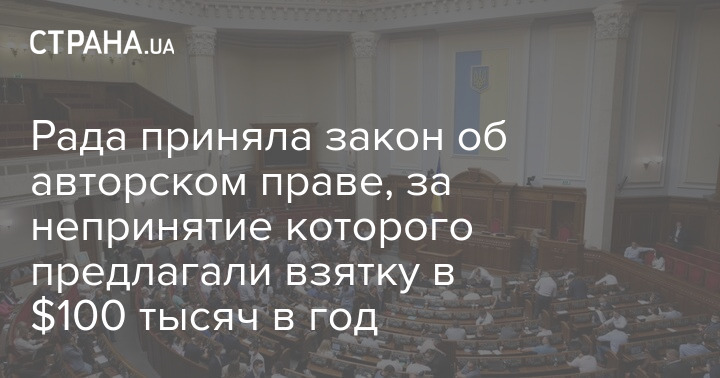 На заседании в среду, 15 декабря, Верховная Рада приняла закон об авторском праве (законопроект №5572), за недопущение принятия которого "слуге народу" Александру Санченко предлагали взятку в 100 тысяч долларов в год.