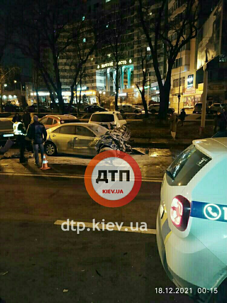 В ночь на субботу, 18 декабря, в Оболонском районе Киева легковой автомобиль Toyota Camry столкнулся с более десятью припаркованными у дороги авто и загорелось. При этом водитель с места происшествия скрылся.