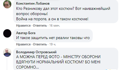 Еще один пользователь, Владимир Островский, призвал министра "надеть нормальный костюм", прежде чем фотографироваться, поскольку "ему стыдно".
