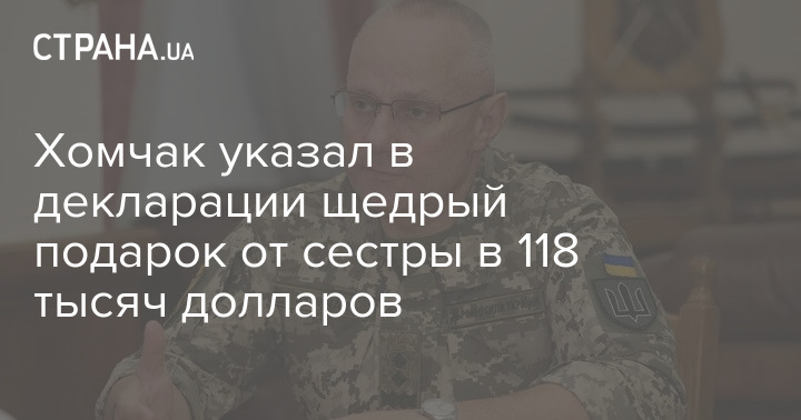 Экс-главнокомандующий ВСУ, первый заместитель секретаря СНБО Руслан Хомчак получил в подарок от сестры 118 тыс. долларов (3,2 млн. грн. - Ред.). Об этом говорится в его электронной декларации.