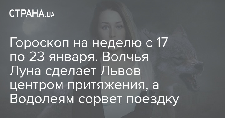 Подготовили подробный гороскоп на предстоящую неделю - с 17 по 23 января. Неделя станет особо благоприятной для Львов, чей знак зодиака окажется в эпицентре всевозможных событий благодаря первому в этом году полнолунию 18 января (в 01:51 по Киеву). Его часто называют Волчьим, потому что волки в это время становятся особенно агрессивными и свирепыми. В эзотерике это особый энергетический день, который принесет много удачи творческим людям, а вот бизнесменам может подпортить часть планов.