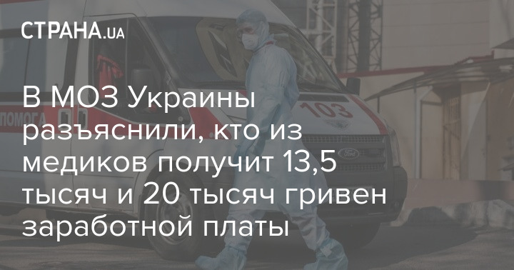 В МОЗ Украины разъяснили, кто из медиков получит 13,5 тысяч и 20 тысяч гривен заработной платы