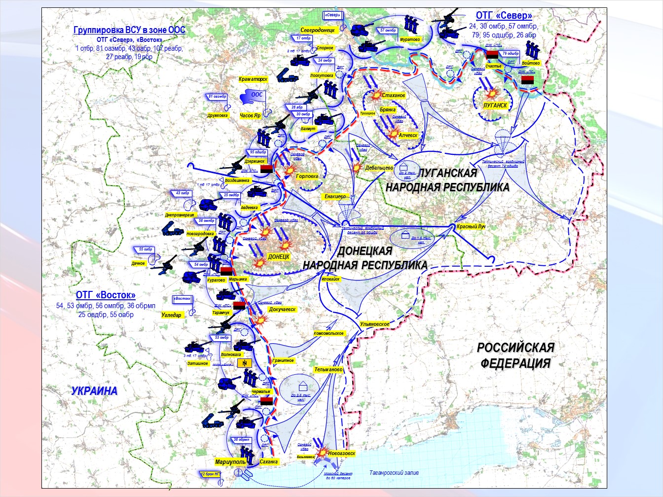 "Блокировав трассу Луганск-Дебальцево "М-30", оперативно-тактическая группировка "Север" должна развивать наступление в глубину обороны "ЛНР" с целью выхода к н.п. Красный луч" и соединения с группировкой "Юг". В ходе боевых действий планируется окружение и блокирование крупных населенных пунктов Донецк, Луганск, Горловка и Алчевск.