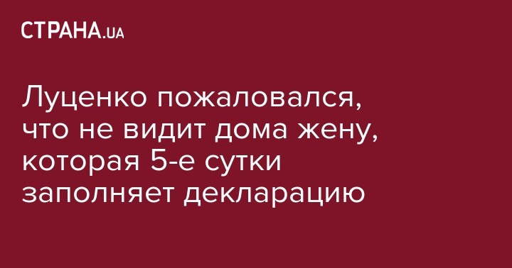 Генеральный прокурор Юрий Луценко пожаловался на то, что из-за электронной декларации, которую заполняет его супруга Ирина уже пятые сутки, он с ней не может нормально пообщаться, передает "112 Украина".