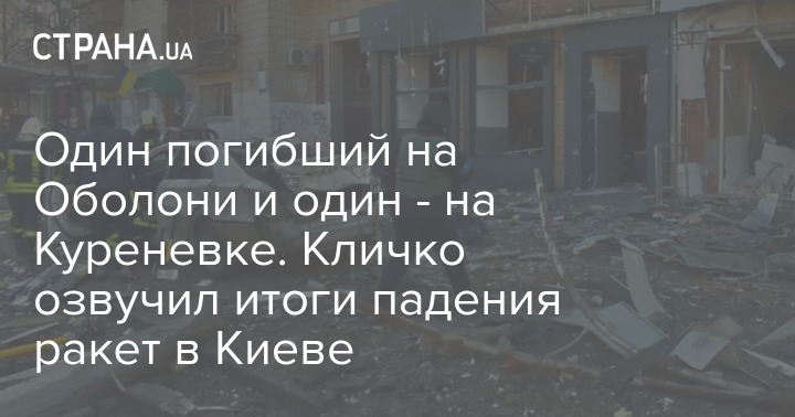 Мэр Киева Виталий Кличко рассказал, что в результате сегодняшнего удара по Оболони погиб один человек, еще 10 были ранены.