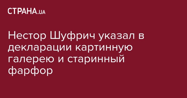 Также в собственности Нестора Шуфрича задекларирована коллекция живописи из 287 картин, 121 предмет старинного фарфора, 17 часов, 156 единиц огнестрельного и 568 холодного оружия.