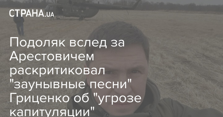 Вслед за Арестовичем к экс-министру обороны Анатолию Гриценко, который заявил об угрозе "капитуляции" Украины на переговорах с Россией, обратился и советник главы ОП Михаил Подоляк.