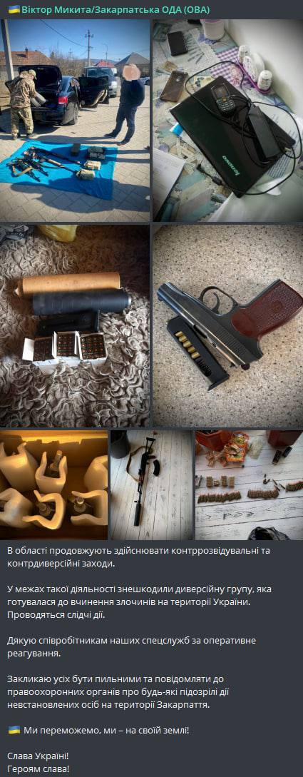 10.23 В Ужгороде задержали группу диверсантов, которые, как считают спецслужбы, готовили покушение на президента Зеленского и беспорядки в правительственном квартале Киева. Информацию о задержании подтвердил глава Закарпатской ОГА Виктор Микита.