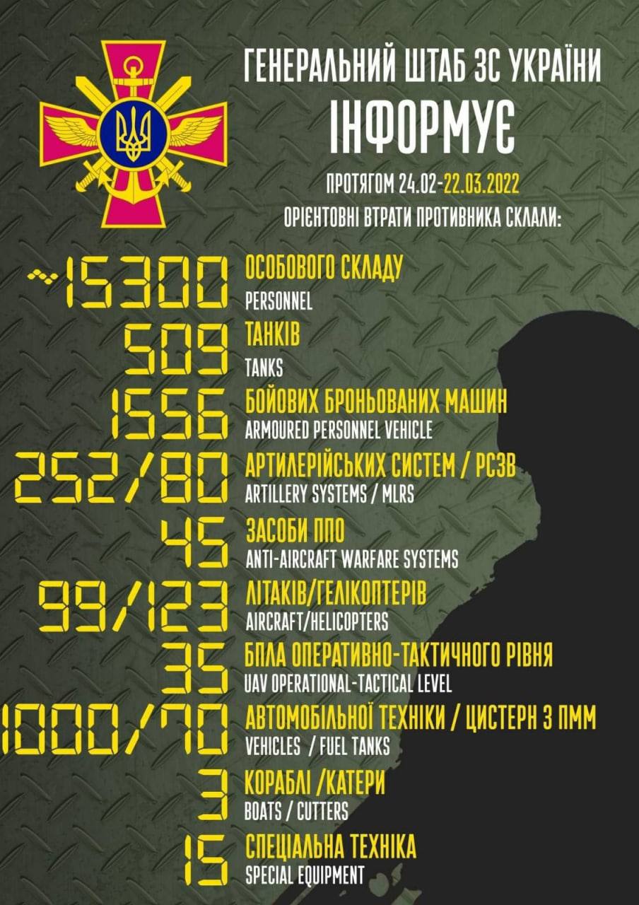 Свежая сводка Генштаба ВСУ по итогам 22 марта 2022 года