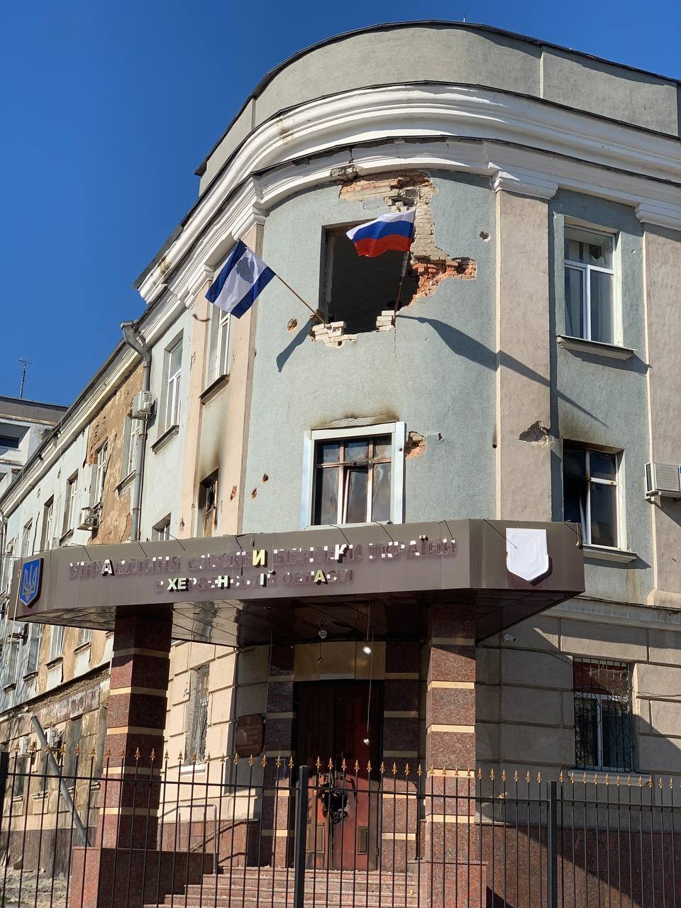 11.35 Вот так сейчас выглядит здание управления СБУ по Херсонской области.