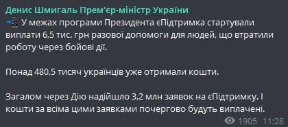 11.48 6500 грн разовой помощи в рамках программы "єПідтримка" получили уже 480,5 тысяч украинцев.