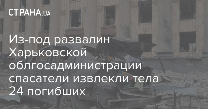 Из-под завалов Харьковской обладминистрации с момента обстрела и по сей день извлечены тела 24 погибших.