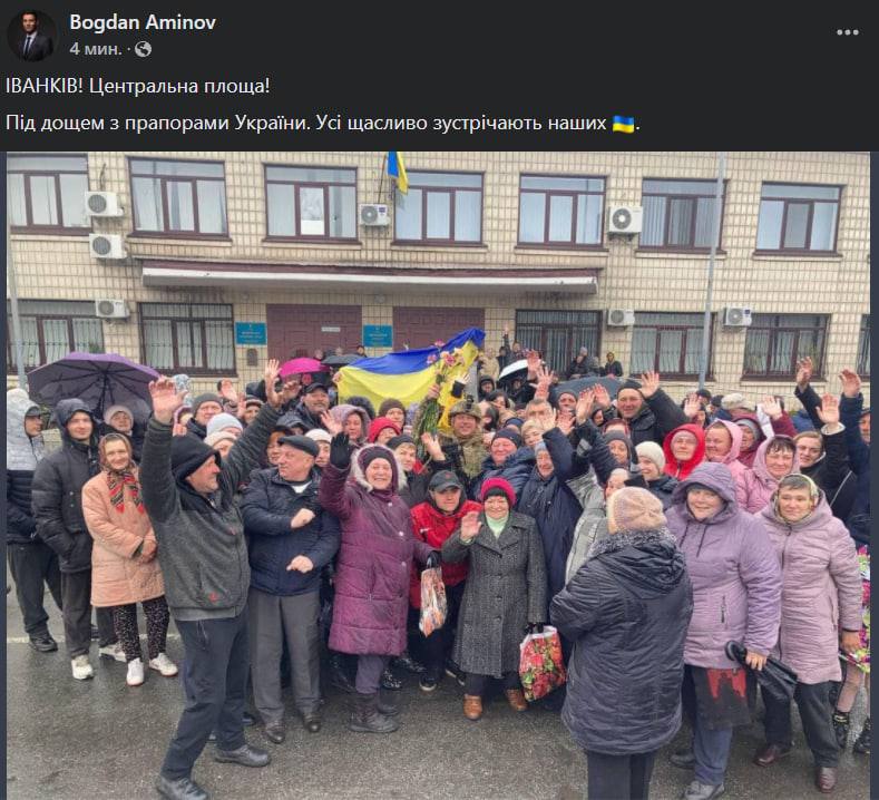 Кроме того, журналист Богдан Аминов сообщил, что поселок Иванков в 80 километрах к северу от Киева также освобожден ВСУ. Он опубликовал фото из центра города.