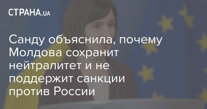 Санду объяснила, почему Молдова сохранит нейтралитет и не поддержит санкции против России
