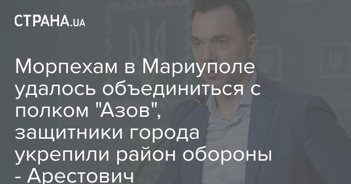 Советник главы Офиса президента Алексей Арестович рассказал о ситуации в Мариуполе. Он сообщил, что бригаде морской пехоты удалось объединиться с полком "Азов".