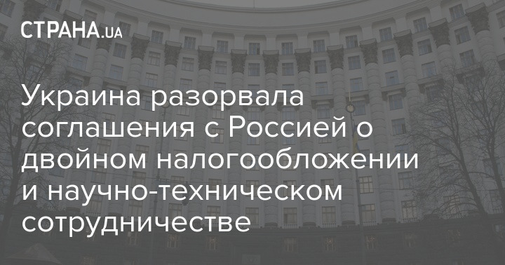 Кабмин денонсировал еще два соглашения с Россией: об избежании двойного налогообложения доходов и имущества, а также соглашения о научно-техническом сотрудничестве.