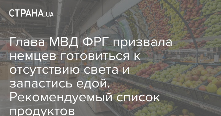 Министр внутренних дел Германии Нэнси Фезер призывает немцев делать дома запасы еды и воды. А также готовиться к отсутствию электричества.
