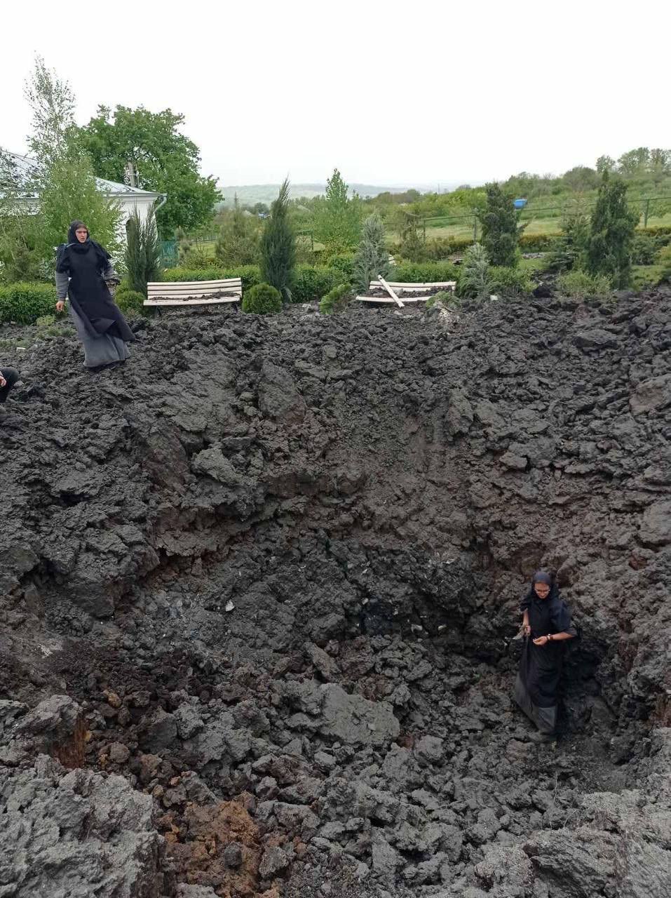 В Донецкой области обстрелы все ближе к Славянску. На фото - последствия ударов по селу Адамовка. Удар пришелся по скиту Инна Шанхайского, который входит в структуру Святогорского монастыря. Также вчера обстрелу подвергся и другой скит монастыря - в селе Долина.