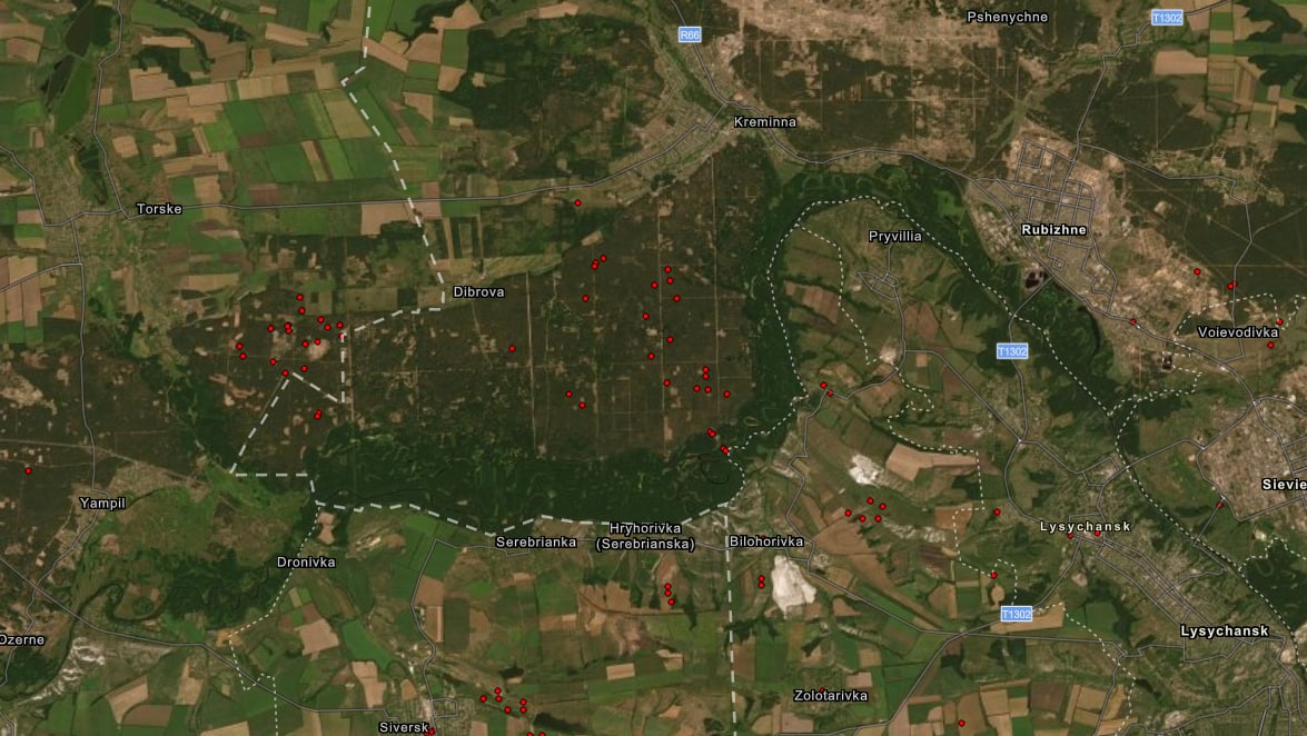 Также на спутниковом снимке видны пожары к западу от Северодонецка в районе Белогоровки, Приволья и Новодружеска.
