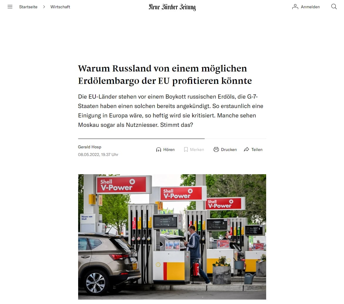 Об этом пишет экономический обозреватель швейцарской газеты Neue Zürcher Zeitung Геральд Хосп.