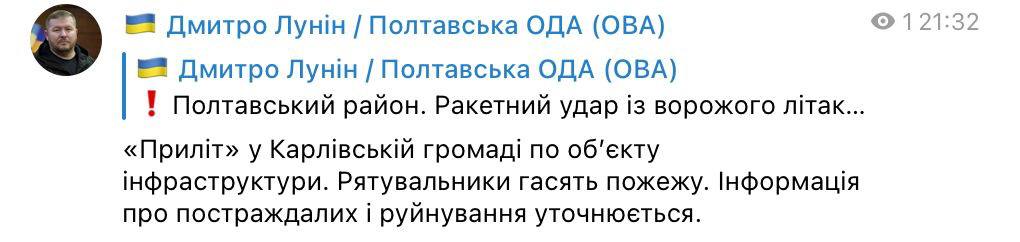 "Сегодня был трагический день для нашей общины. В результате ракетных обстрелов был полностью уничтожен склад сельхозпродукции на территории общины. Один гражданский человек погиб", – сказал он.